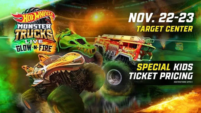 Experience monster-truck mayhem at Hot Wheels Monster Trucks Live: Glow-N-Fire, Nov. 22–23 at Target Center in Minneapolis!